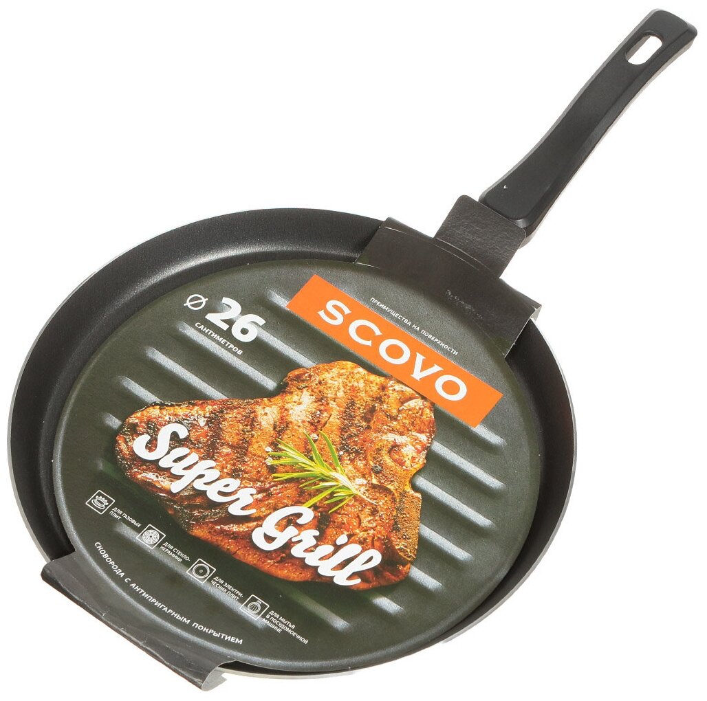 Сковорода Scovo Super Grill RH-001, с антипригарным покрытием, 26 см