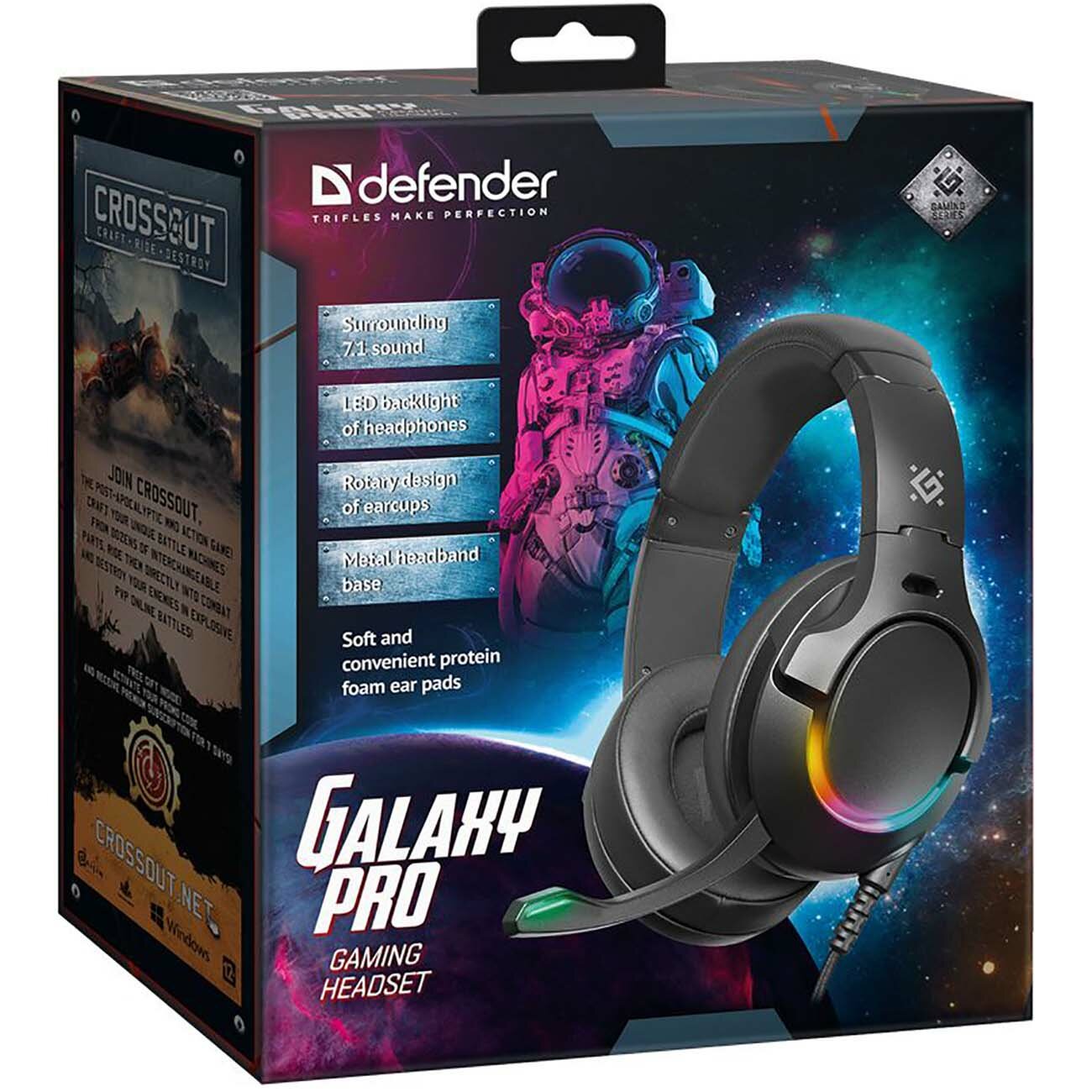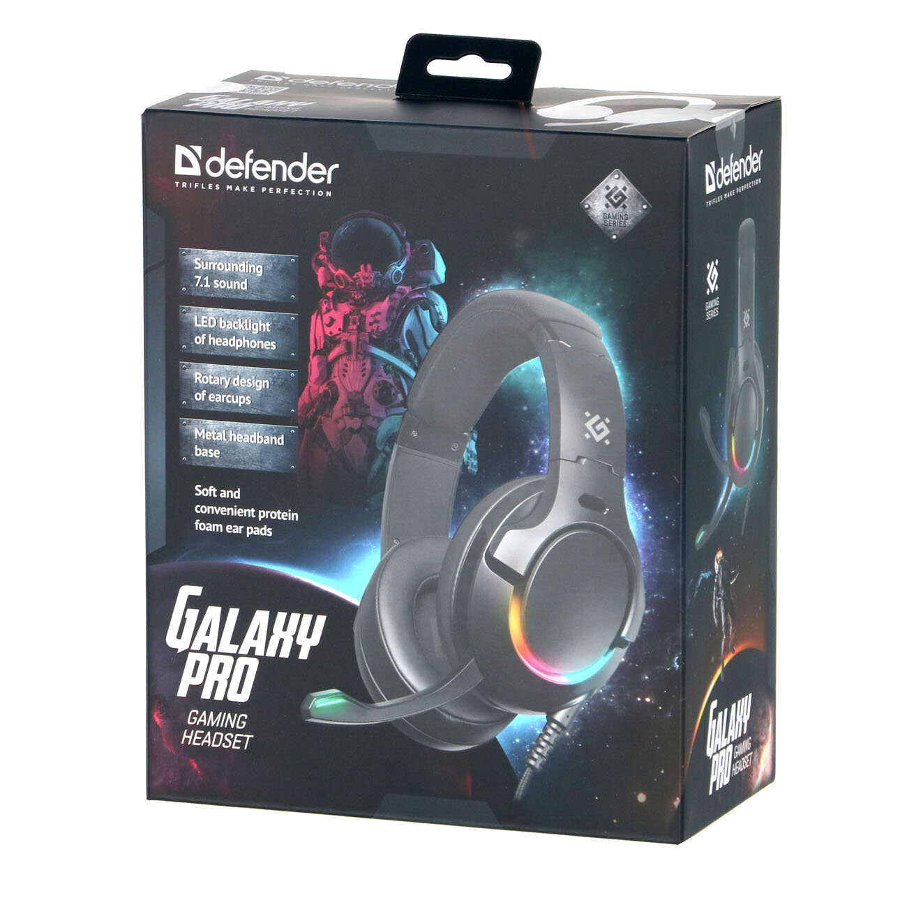 Наушники Defender Galaxy Pro 7.1 игровые, с микрофоном, USB, подсветка, черный