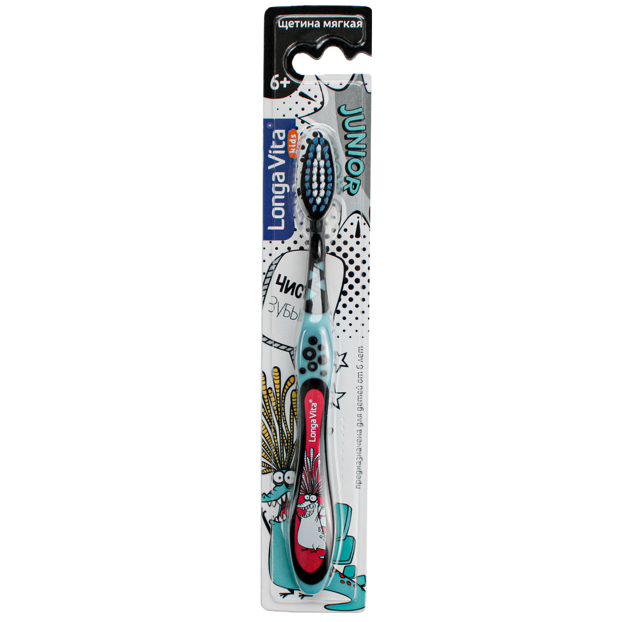 Детская зубная щетка Longa Vita Junior от 6-и лет, мягкая, цвет чёрный