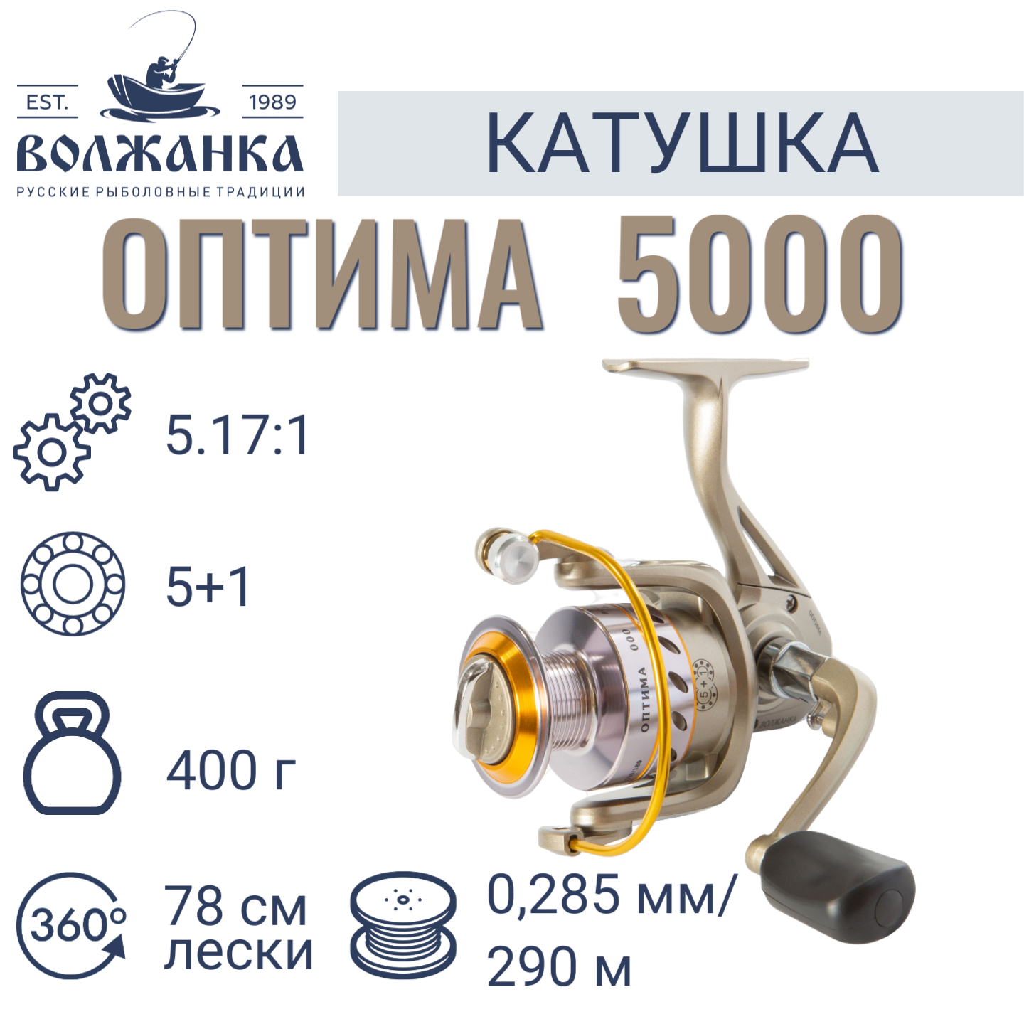 Катушка рыболовная для спиннинга волжанка Оптима 5000/Катушка для рыбалки