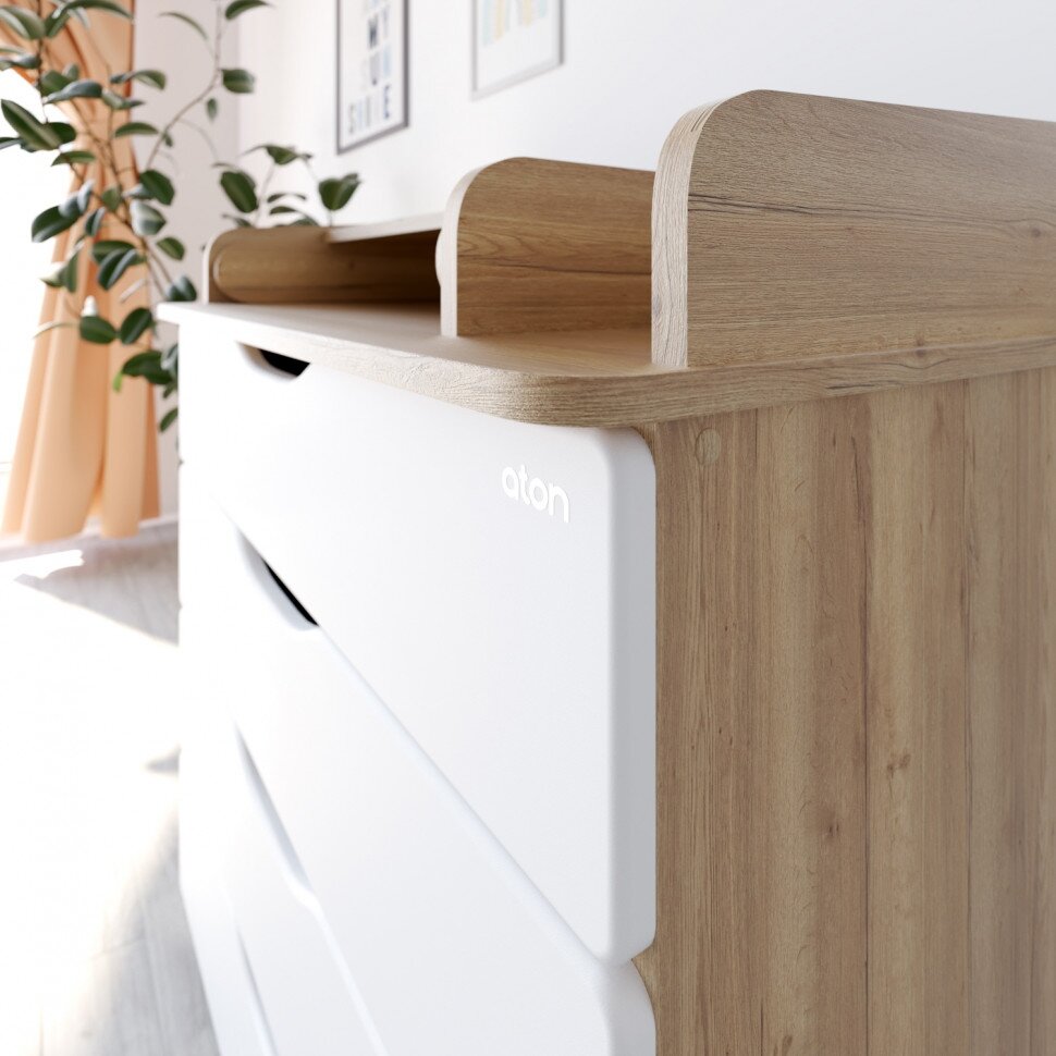 Атон Комод детский с пеленальным столиком Сириус-2 Wood 804 ПВХ, белый премиум, 4 ящика