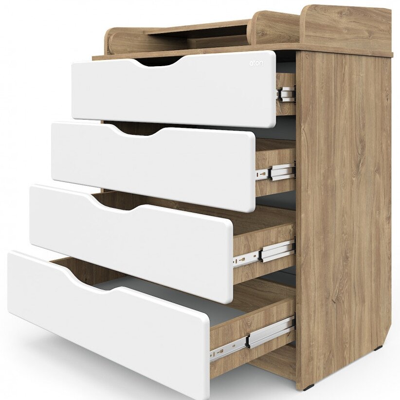 Комод с пеленальной поверхностью, 94x81x48см, 4 выдвижных ящика, Атон Мебель белый