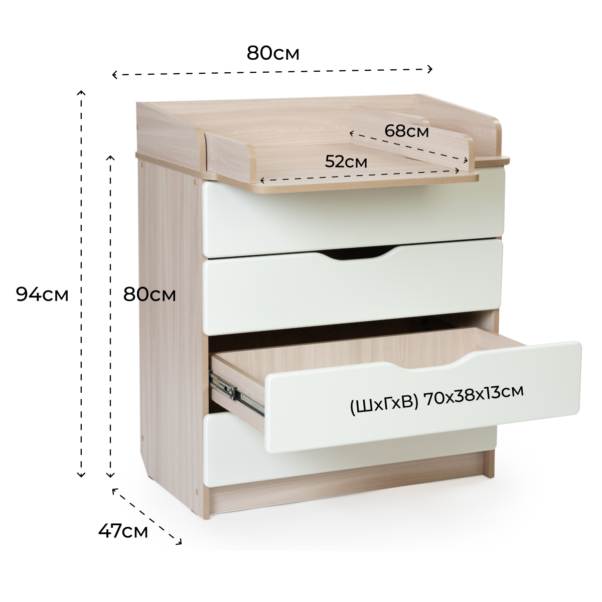 | Дополнительная информация | комод имеет откидной пеленальный столик, длина пеленального столика - 52 см |