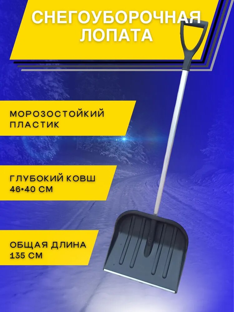 Лопата для уборки снега, морозостойкая, ковш 46см с усиленной оцинкованной планкой, композиционный пластик, металлический черенок
