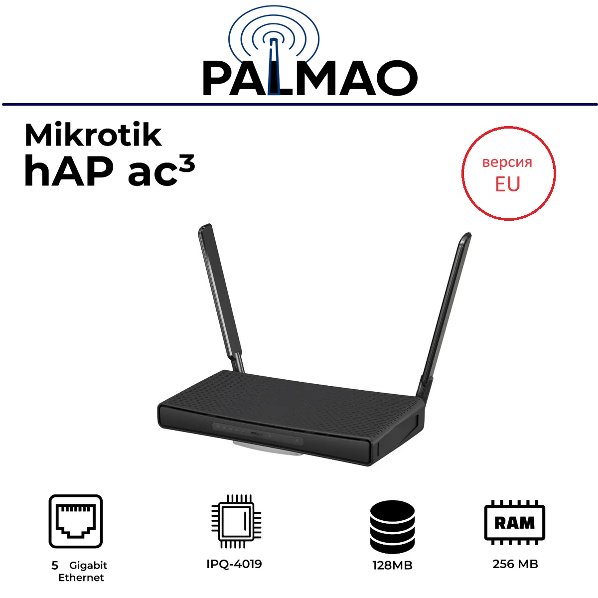 Двухдиапазонный беспроводной маршрутизатор Mikrotik HAP ac3 (RBD53iG-5HacD2HnD) - Wi-Fi роутер