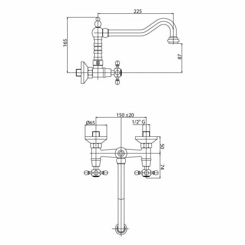 Кухонный смеитель для настенного монтажа хром, ручки хром Cezares Lord LORD-LLP-01