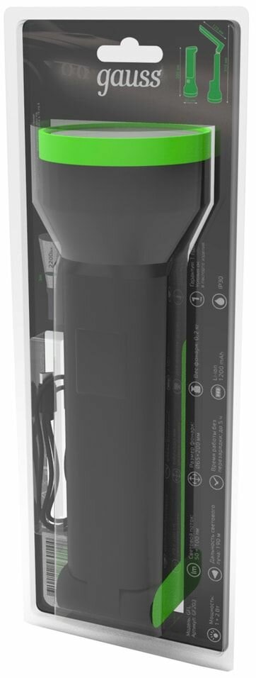 Ручной светодиодный фонарь Gauss аккумуляторный 200х65 150 лм GF203