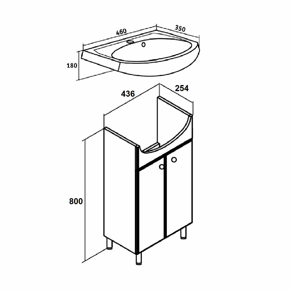 Тумба под раковину напольная Уют 45, 2 двери, белая