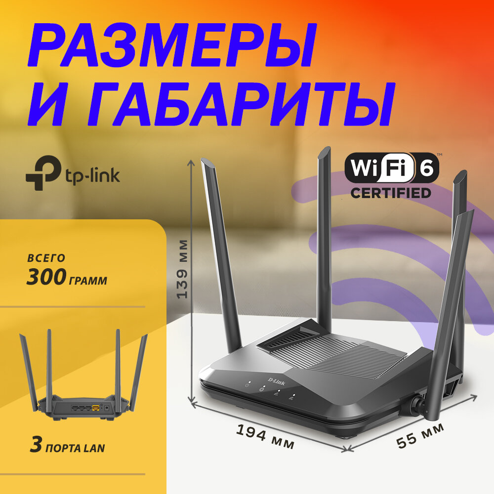 Маршрутизатор D-Link DIR-X1530/RU/A1A двухдиапазонный гигабитный Wi-Fi 6 AX1500 интересное: