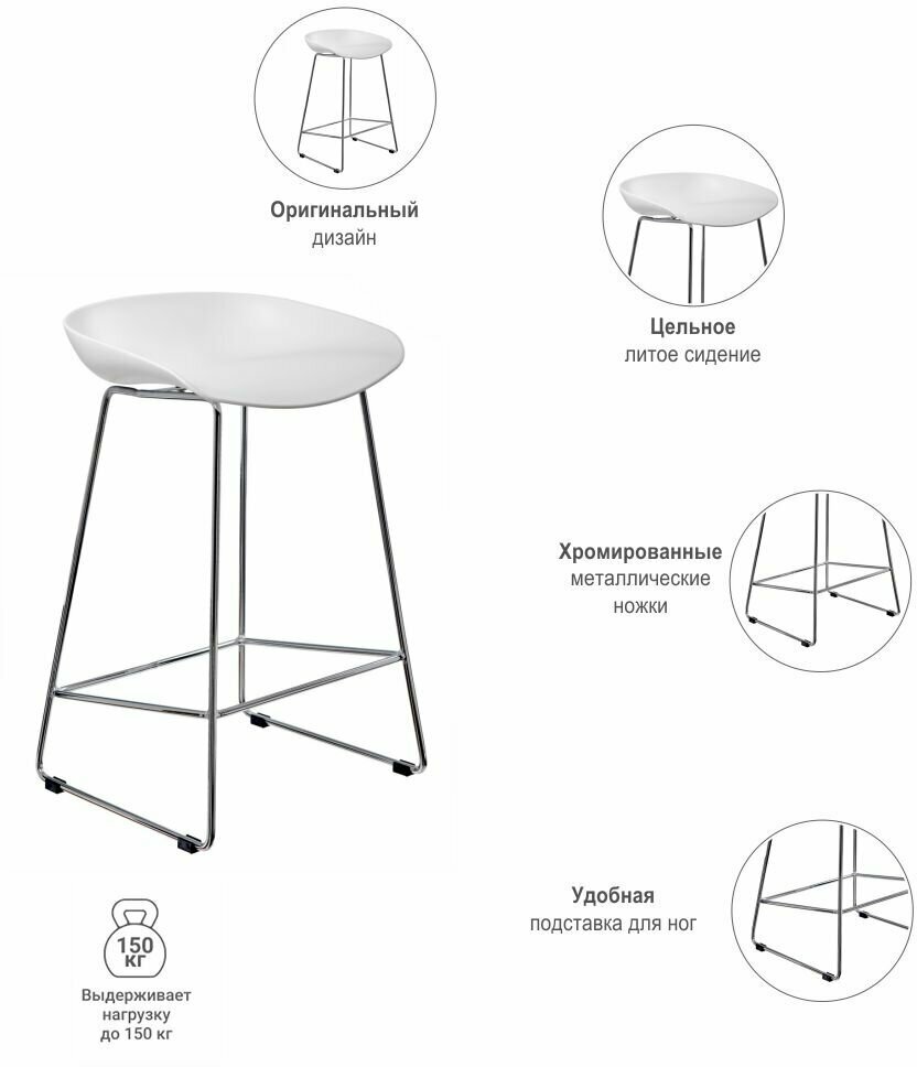 Стул полубарный Neo белый / Стулья для кухни / Кухонные стулья со спинкой / Полубарные стулья / 12 стульев / Барный стул / Мебель лофт