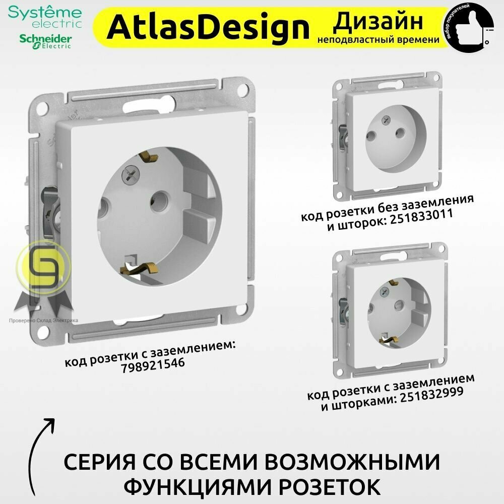 Розетка с заземлением, со шторками, белая Schneider Electric AtlasDesign (комплект 10шт)