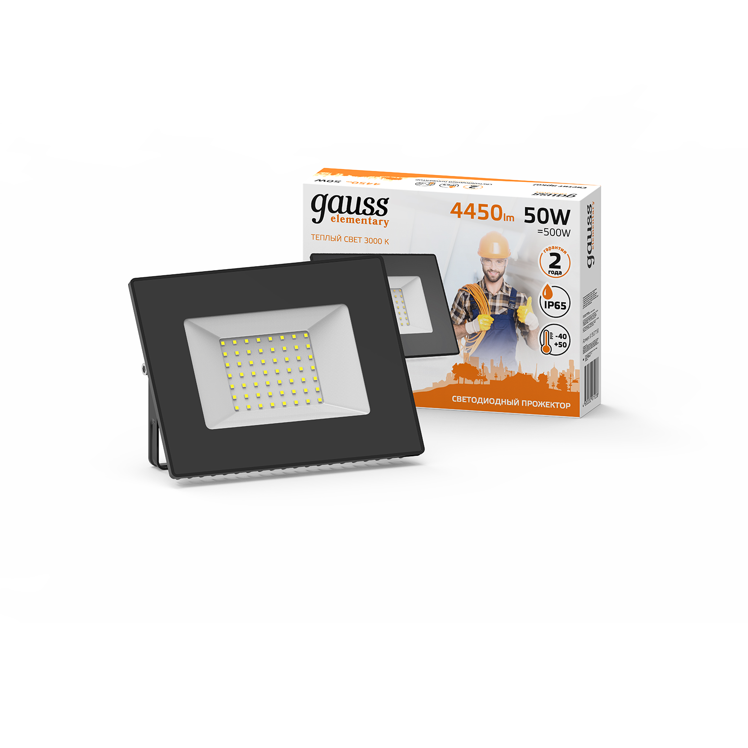 Прожектор светодиодный gauss Elementary 613527150, 50 Вт, свет: теплый белый
