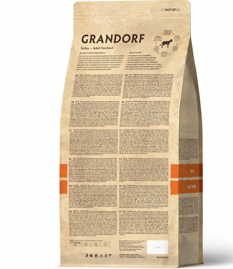 Корм для кошек GRANDORF для стерилизованных, индейка сух. 400г