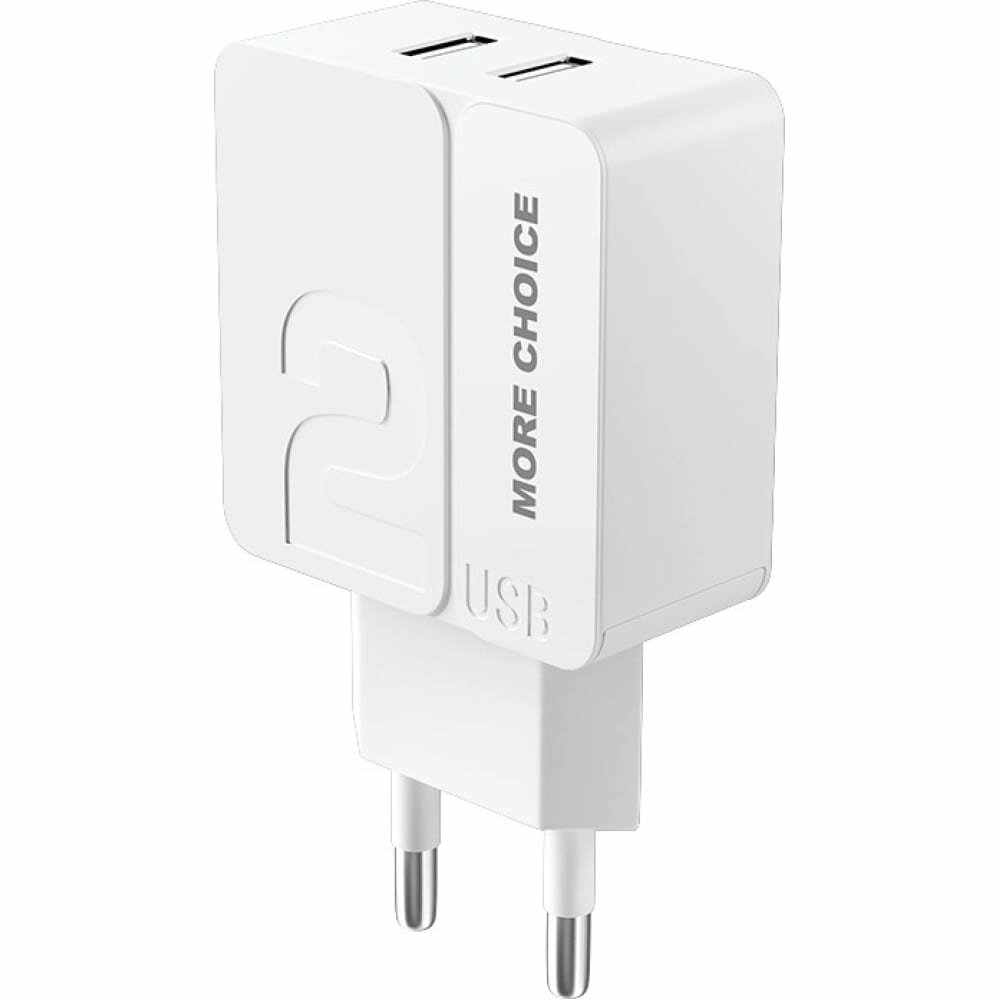 Сетевое зарядное устройство MORE CHOICE NC46 2 USB, белый/серый