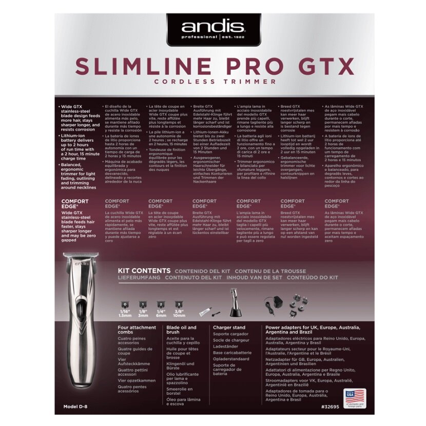 Триммер для стрижки волос Andis D-8 Slimline GTX, 0.1 мм, аккум/сетевой, 2.45 W, 4 нас. 32695