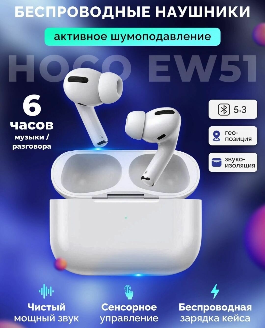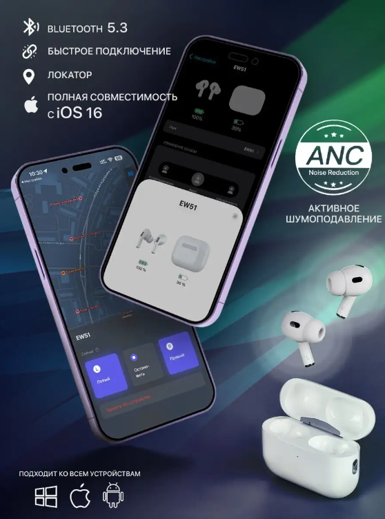 Беспроводные наушники hoco EW51 с активным шумоподавлением ANC HOCO EW51. TWS. интересное: