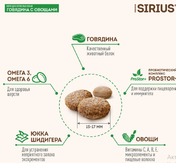 СохранитьSIRIUS Говядина с овощами Сухой корм для собак 15кг интересное: