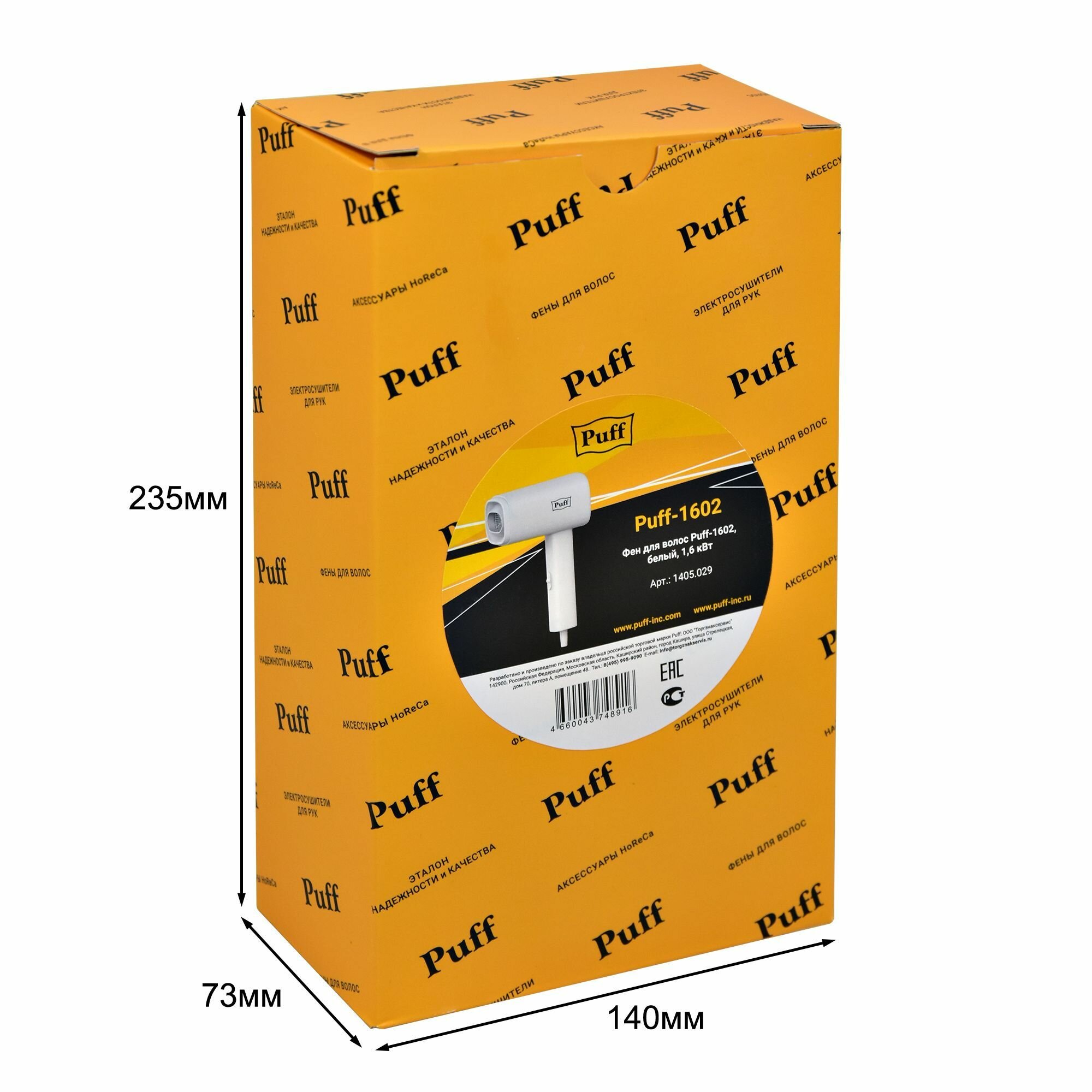 Купить Фен для волос "Puff-1602", белый, 1,6 кВт