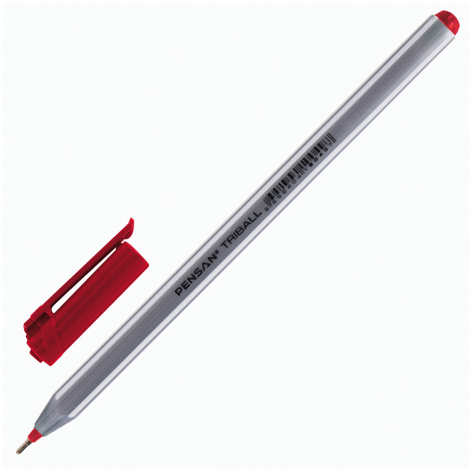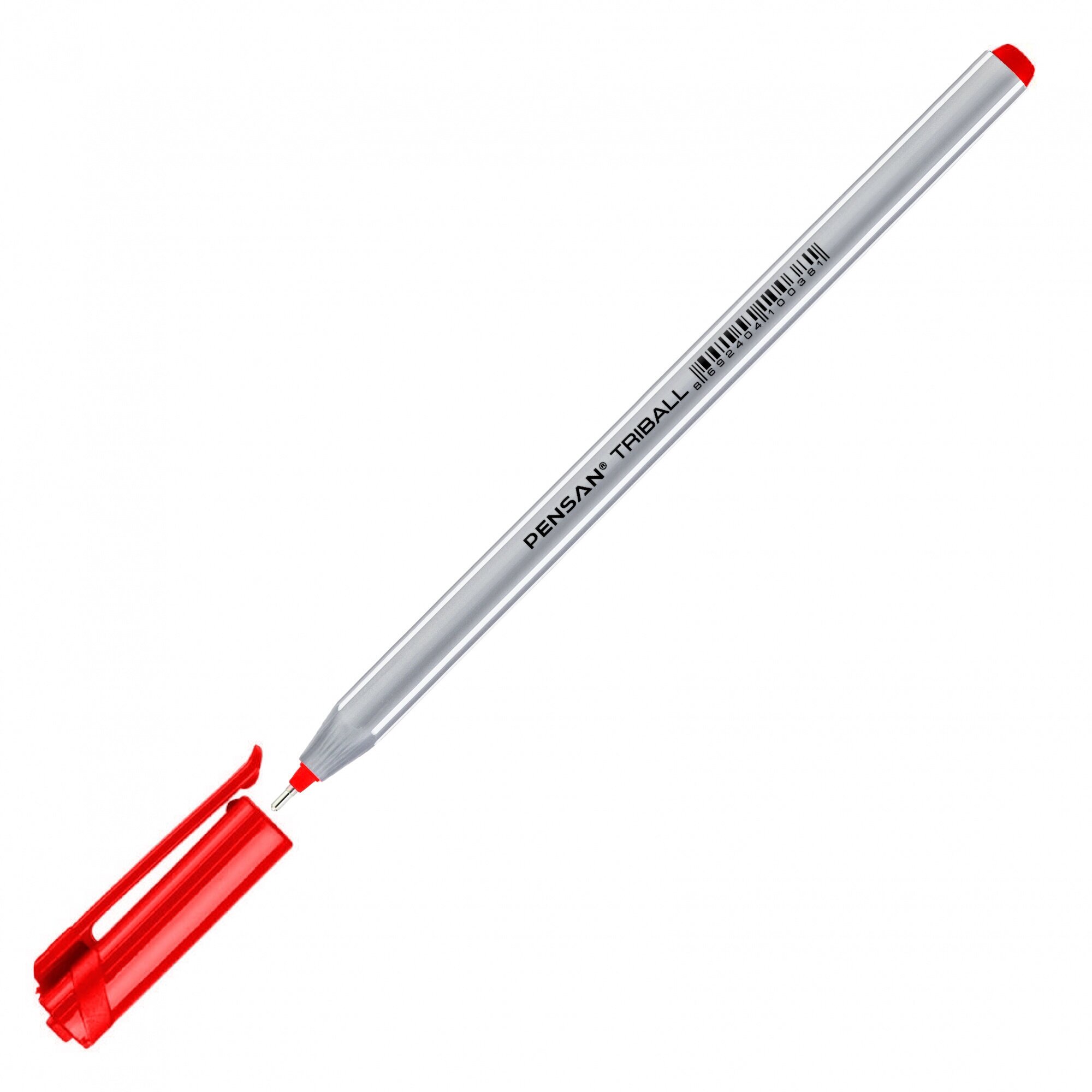 Ручка шариковая Pensan Triball (1003RED) серебристый/красный диаметр 1мм красные чернила коробка картонная 1 стержень игловидный пишущий наконечник линия 0.8мм круглая телескопический корпус на масляной основе