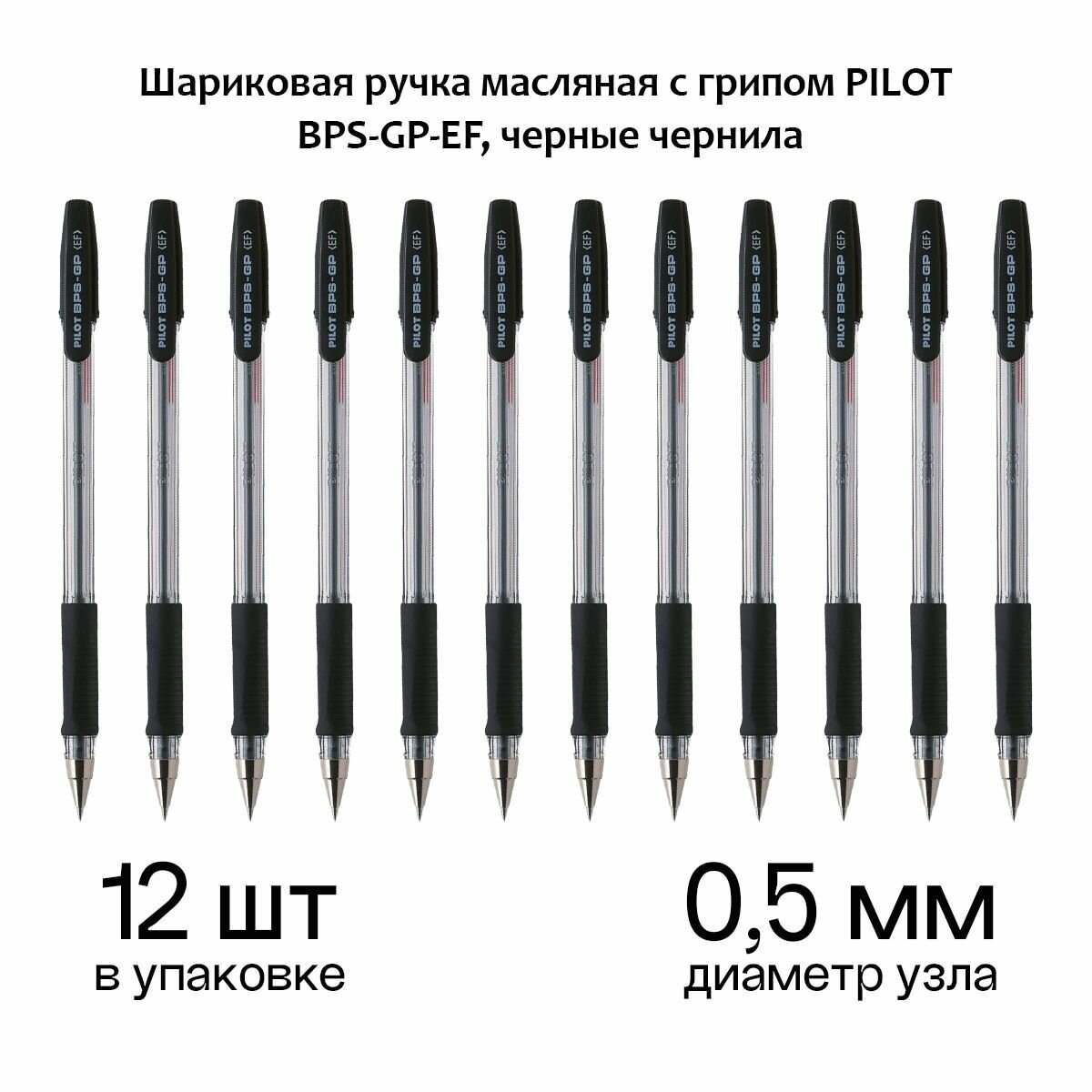 PILOT Набор шариковых ручек BPS-GP-EF, 0.5 мм, черный цвет чернил, 12 шт.