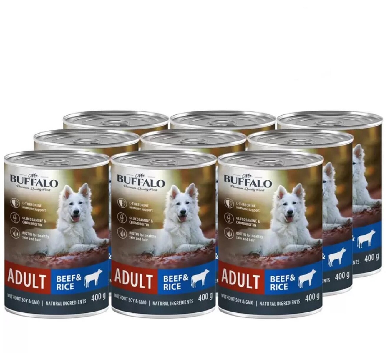 Купить Mr.BUFFALO ADULT консервы для всех пород собак Говядина с рисом 400г(9 штук)