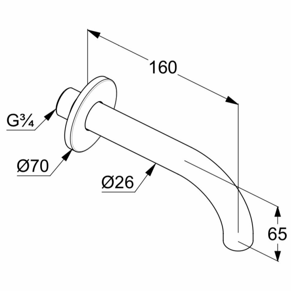 Излив для ванны 160 мм Kludi Bozz 3850505