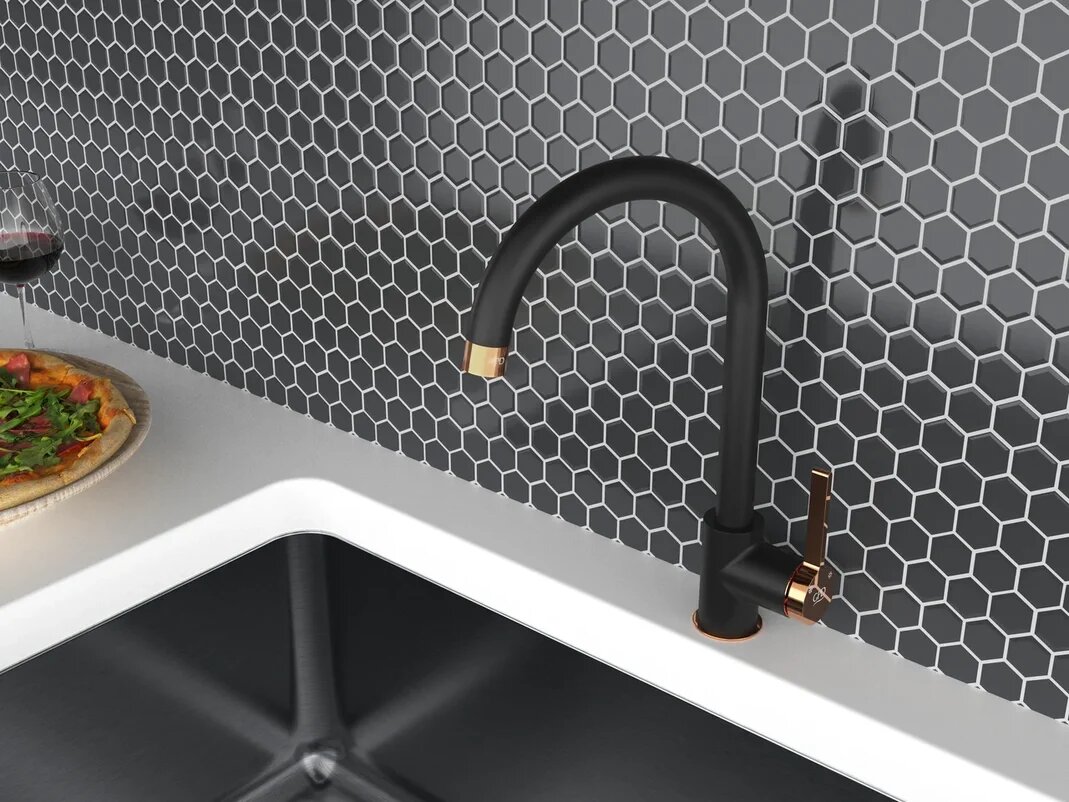 Смеситель для кухни GPD GILDO COLORED MTE165-S-R черный-розовое золото интересное: