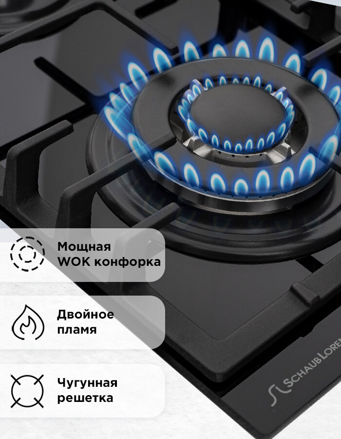 Газовая варочная панель Schaub Lorenz SLK GY6521, 60 см, газ-контроль, электроподжиг, WOK