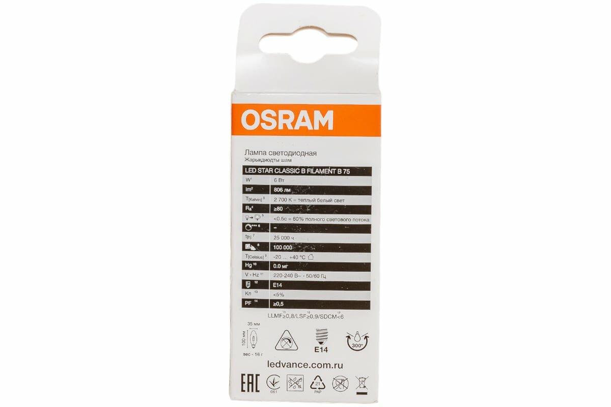 Ниже Вы можете прочитать отзывы на Светодиодная лампа Ledvance-osram Osram LED STAR CL B75 6W/827 220-240V FIL CL E14 806lm, ознакомится с подробными характеристиками, посмотреть интересные обзоры и фотографии на Светодиодная лампа Ledvance-osram Osram LED STAR CL B75 6W/827 220-240V FIL CL E14 806lm.