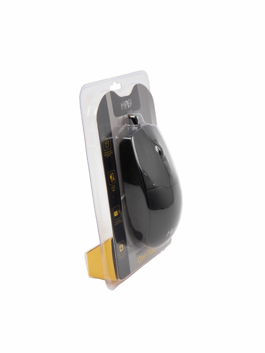 Мышь компьют. Hiper OM-1100 черная, 1600DPi, 125Гц, проводная 1659903