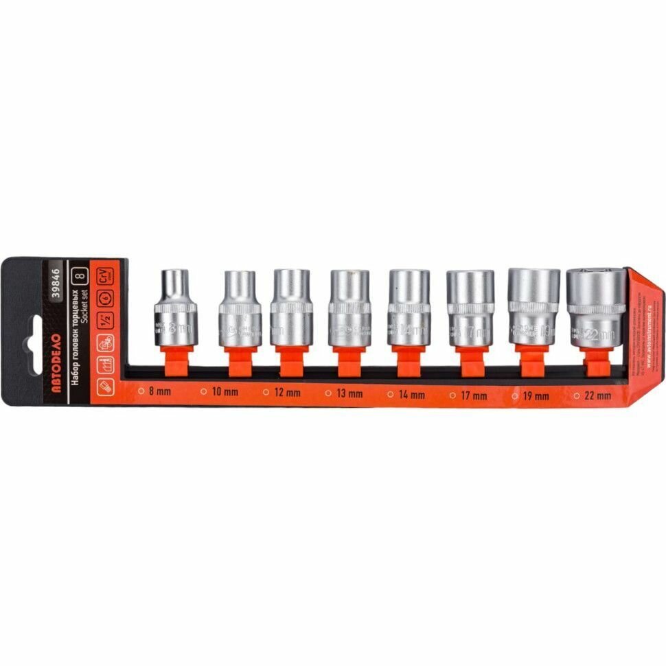 Автодело 39846 Набор головок торцевых 1/2" 6-ти гранных 8-22мм 8 предметов автодело