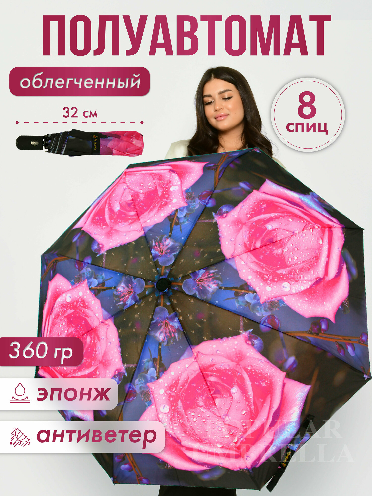Зонт женский полуавтомат, зонтик взрослый складной антиветер 2042, розоваяфуксия