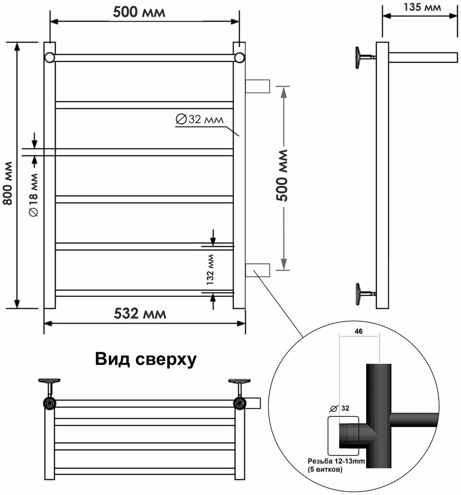 Водяной полотенцесушитель Aquanet Mauro(г2) 800x500
