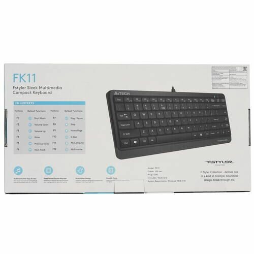 Купить Клавиатура проводная A4Tech Fstyler FK11, USB, черный+серый