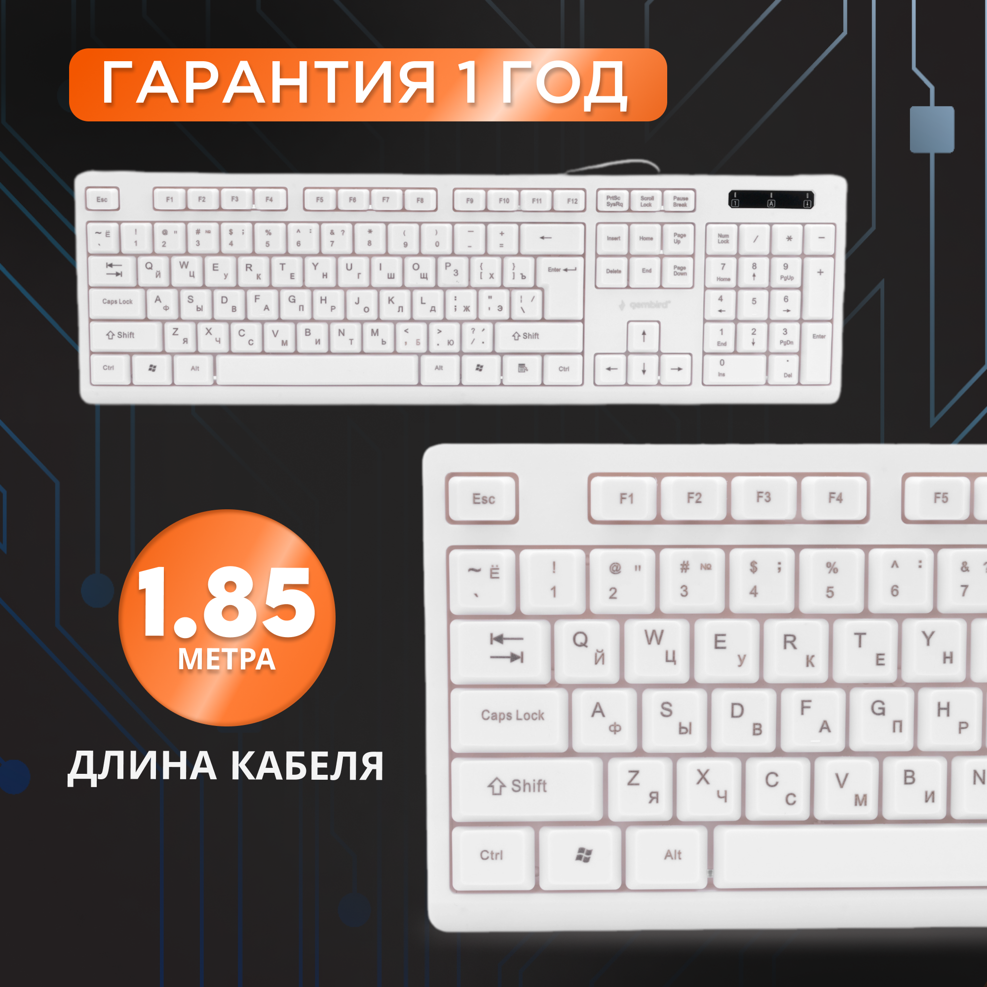Клавиатура Gembird KB-8355U, USB, белый, лазерная гравировка символов, кабель 1,85м