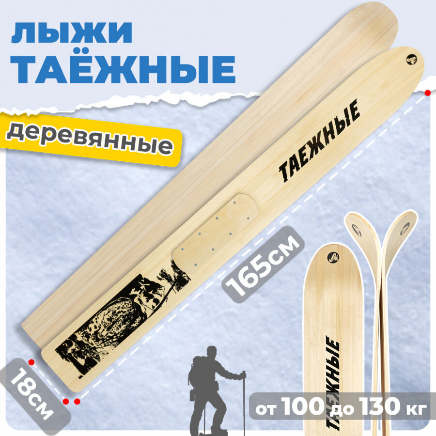 Охотничьи лыжи Маяк таежные 165х18 см, дерево + деревянные накладки / Промысловые для охоты, рыбалки, туризма
