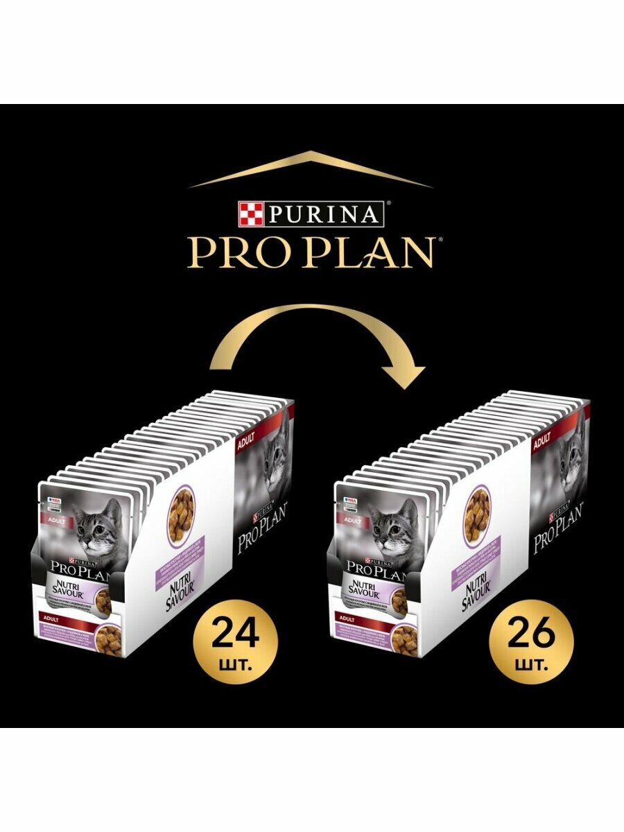 Корм влажный (паучи) Pro Plan Nutri Savour Housecat для взрослых кошек живущих дома, кусочки в желе, индейка, 85 г * 26 штук