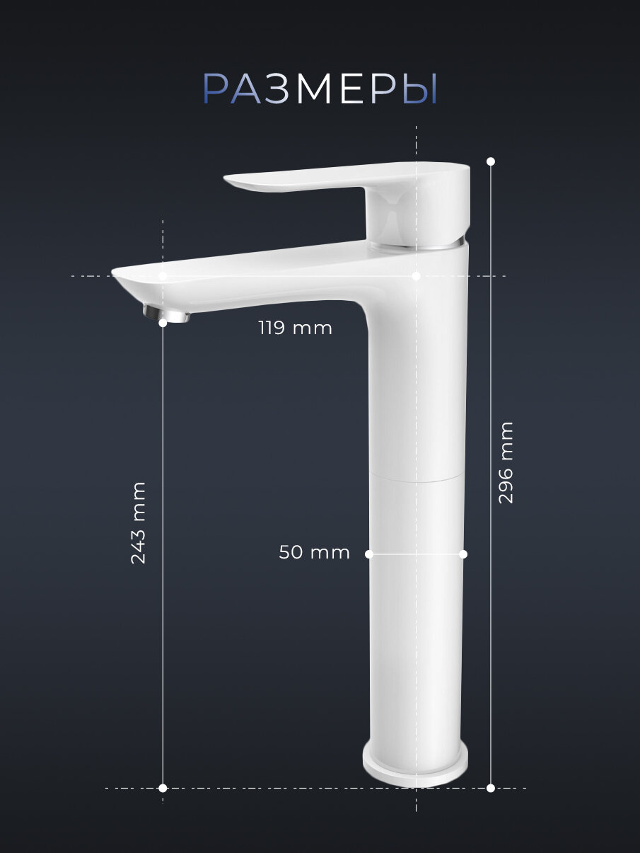 | Дополнительная информация | смеситель для накладных раковин, гибкие подводки 60 см, керамический картридж, аэратор с ограничением расхода воды |