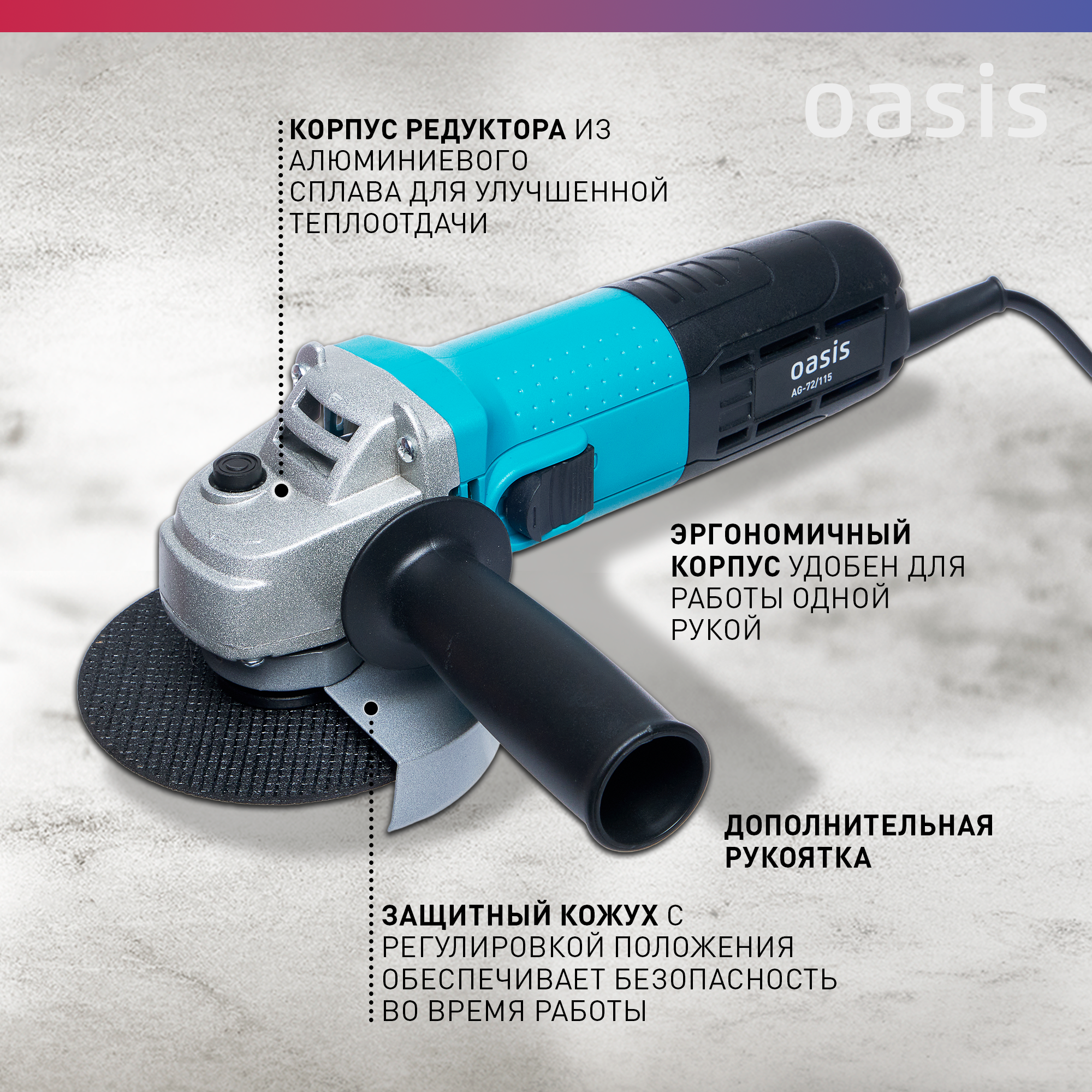 УШМ 115мм Oasis AG-72/115 (115мм, 720Вт, 12000об/мин)