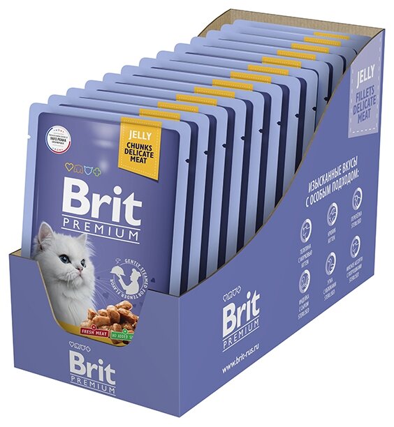 BRIT PREMIUM Паучи для взрослых стерилизованных кошек Мясное ассорти с потрошками в желе, 14 шт.*85г