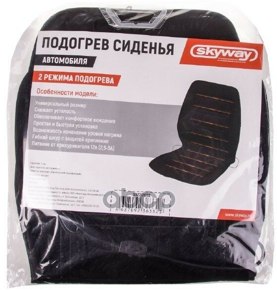 Подогрев Сидений Черный "Skyway" (2-Х Режимный, С Регулятором, 2 Шнура Справа И Слева, 95Х47 См) (1 Skyway арт. S02201018
