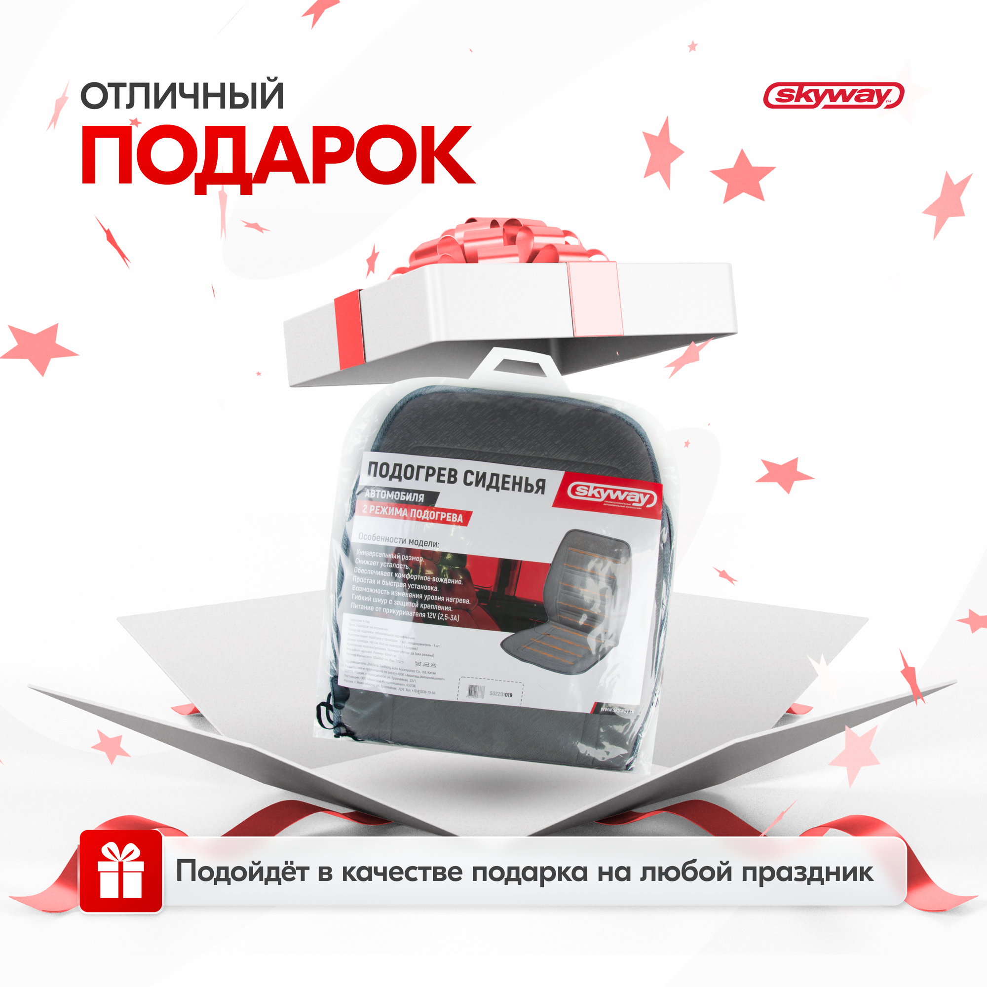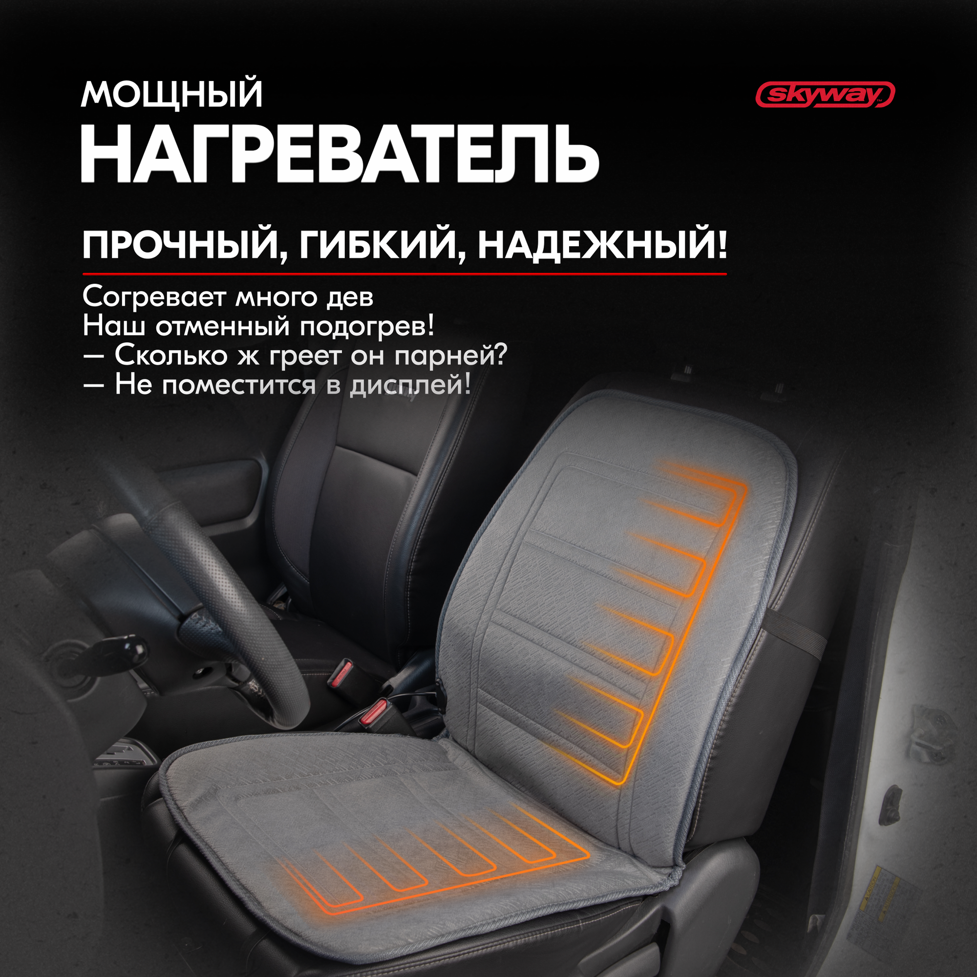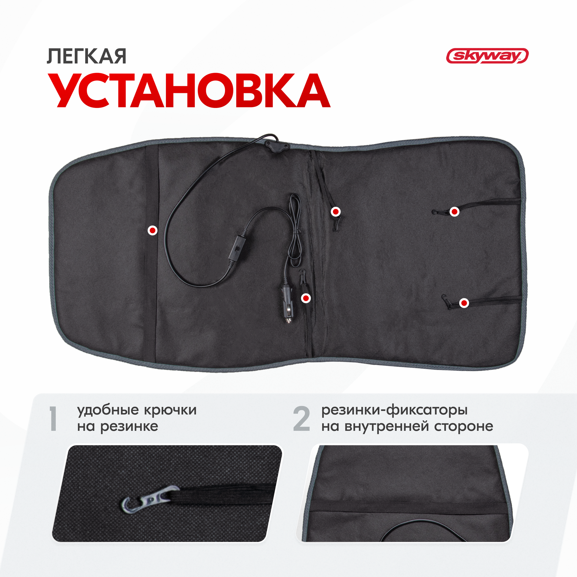 SKYWAY S02201019 Накидка на сиденье с подогревом с терморегулятором (2 режима) 95х47см 12V Серый 2,5А-3А; SKYWAY