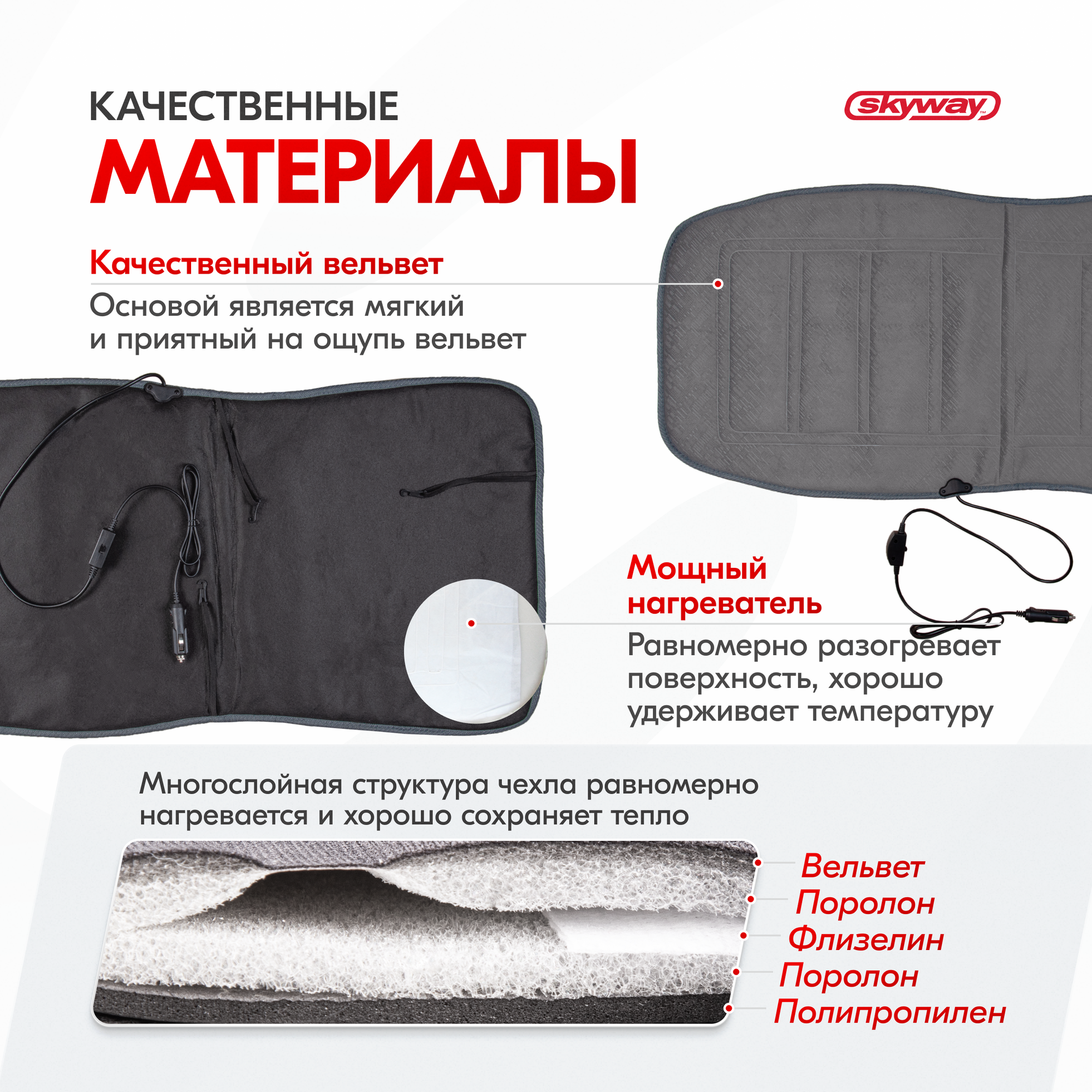 СохранитьНакидка на сиденье с подогревом "SKYWAY" 950 х 470 мм с терморегулятором (2 режима) Серый 12V 2,5А Skyway S02201019 интересное: