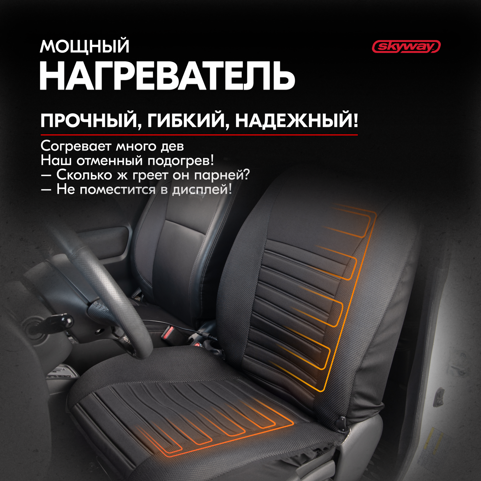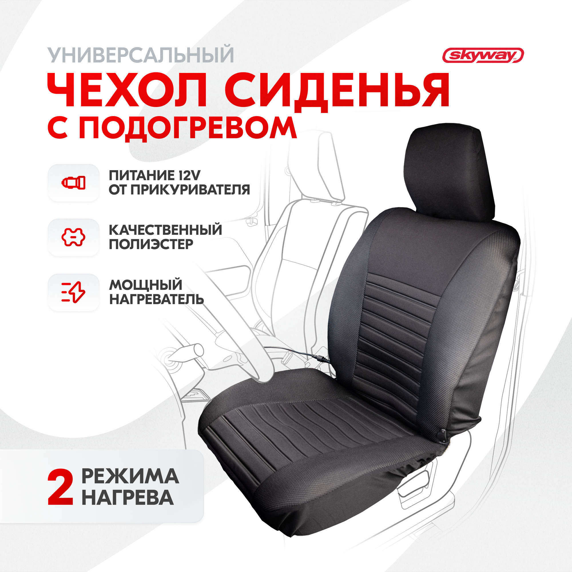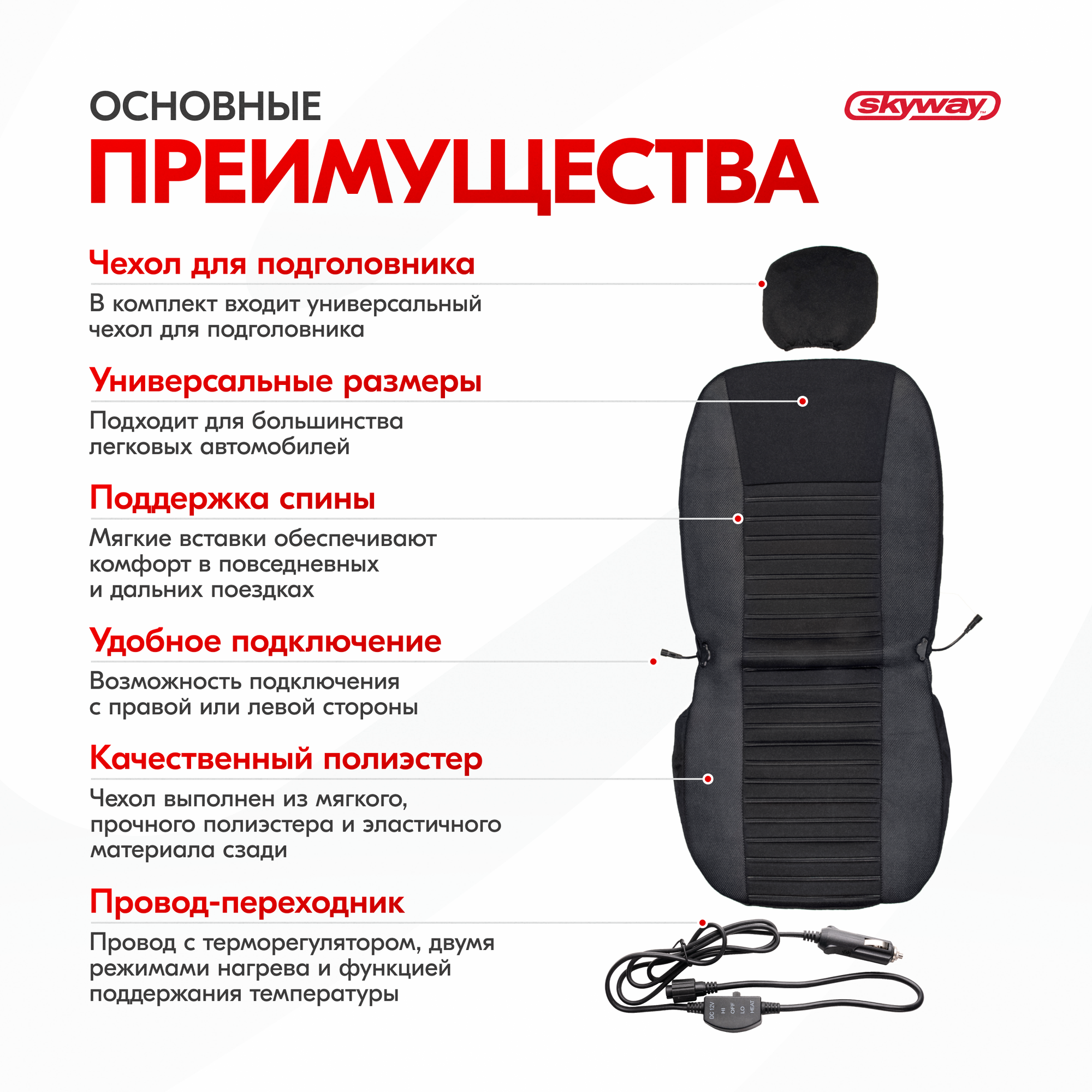 SKYWAY S02202001 Чехол сиденья с подогревом полиэстер с терморегулятором (2 режима) Черный 12V 116х56см 2,5А-; SKYWAY