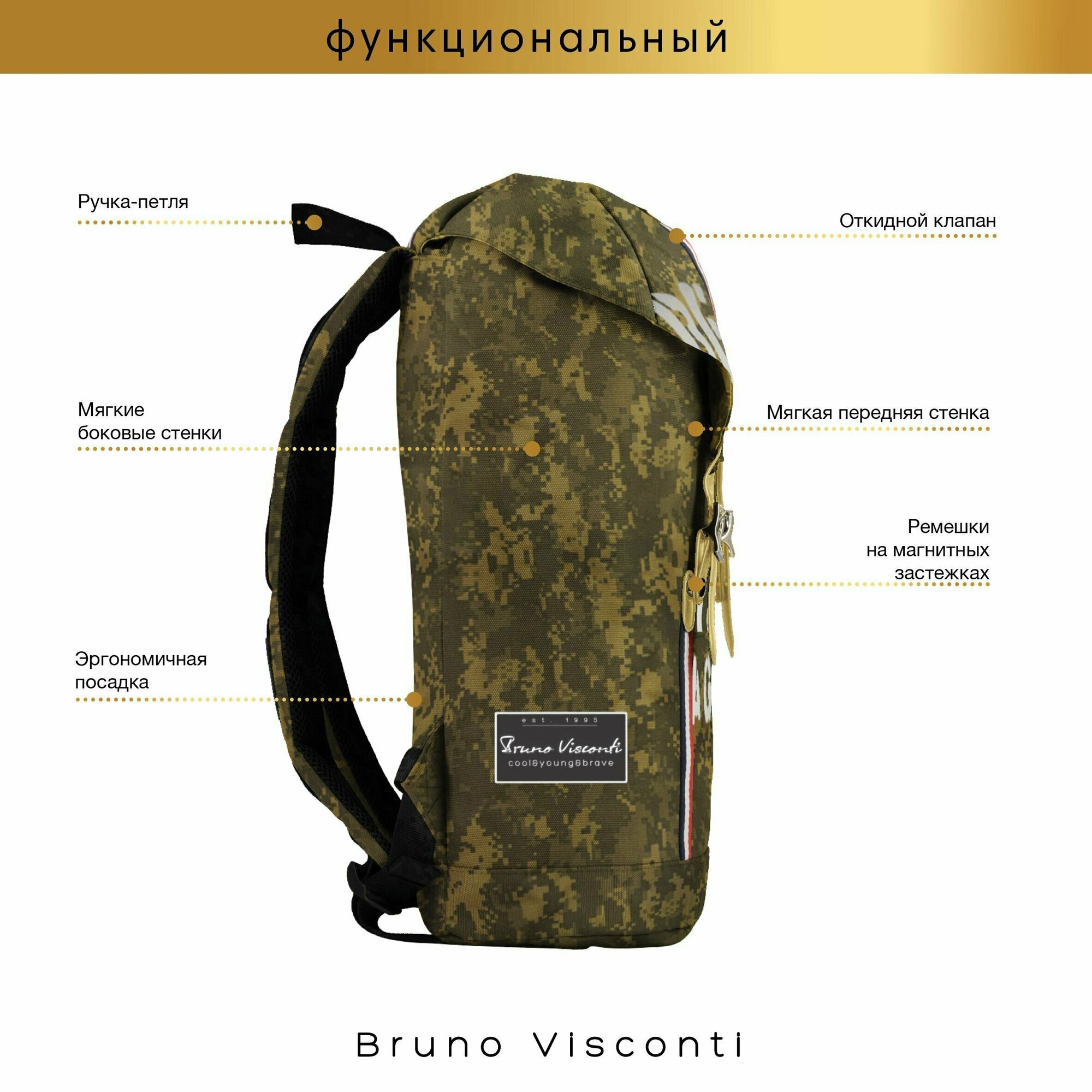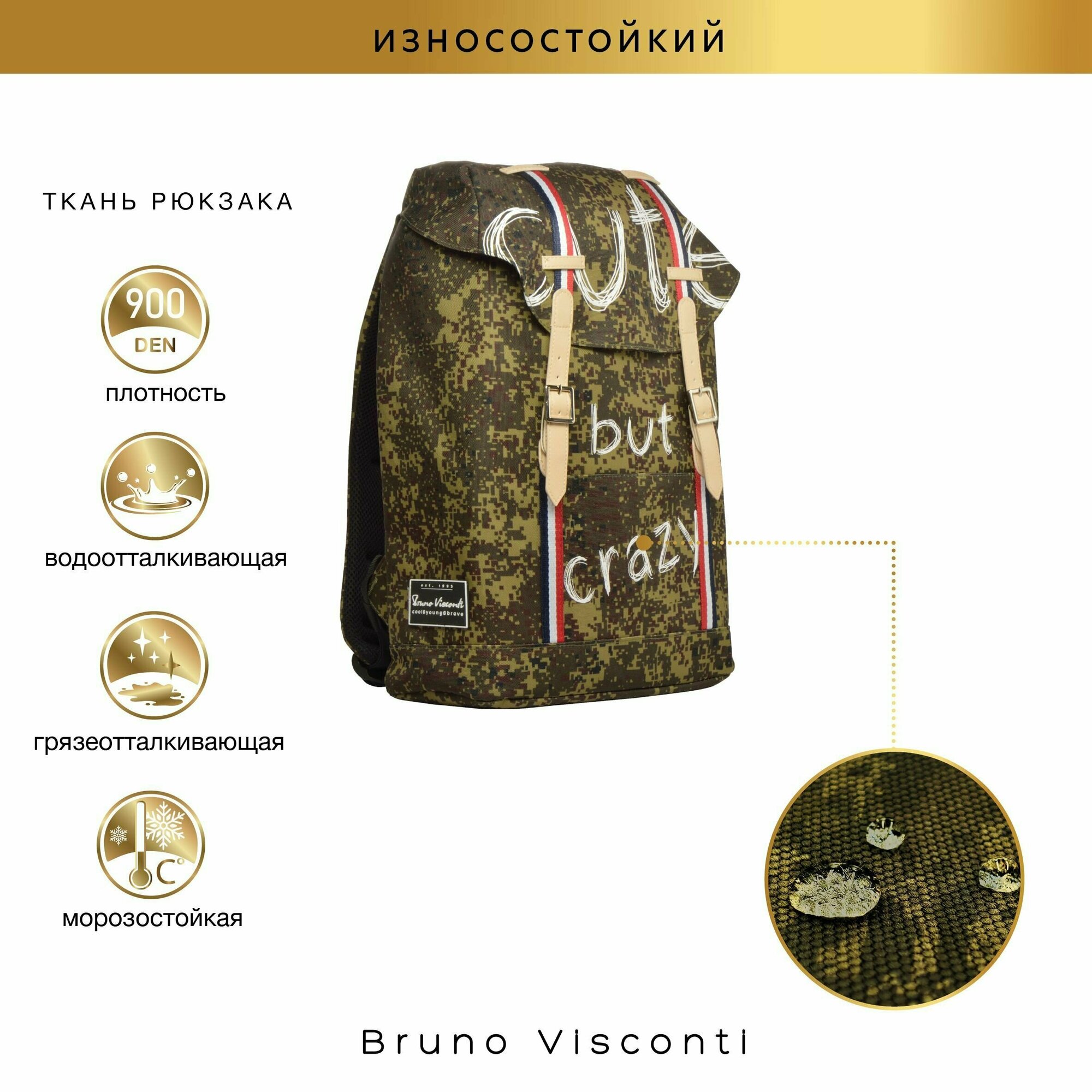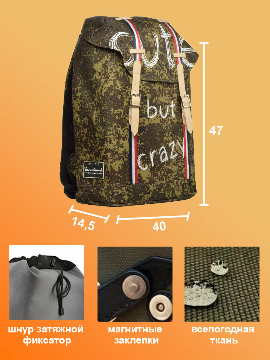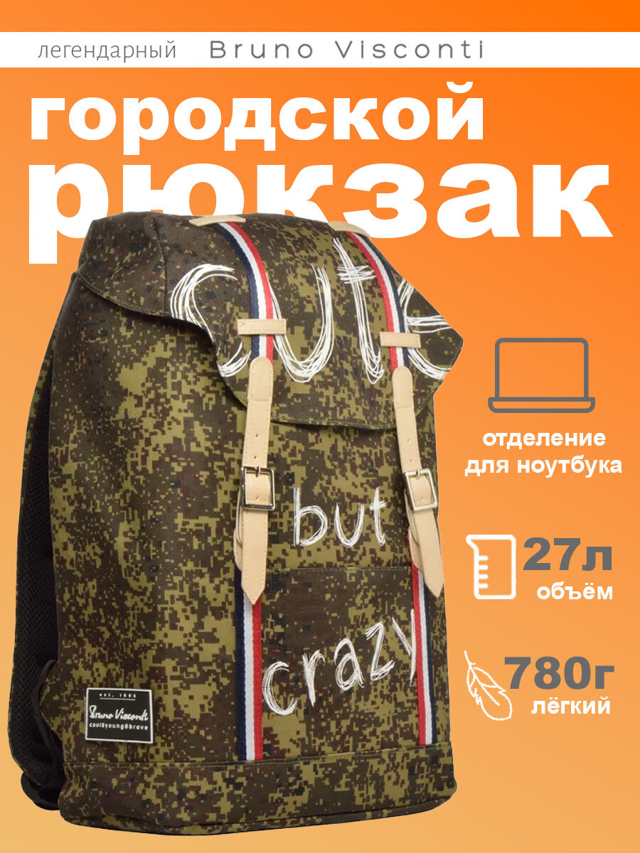 Рюкзак BrunoVisconti городской камуфляж "CRAZY", Арт. 12-011-006/10 интересное: