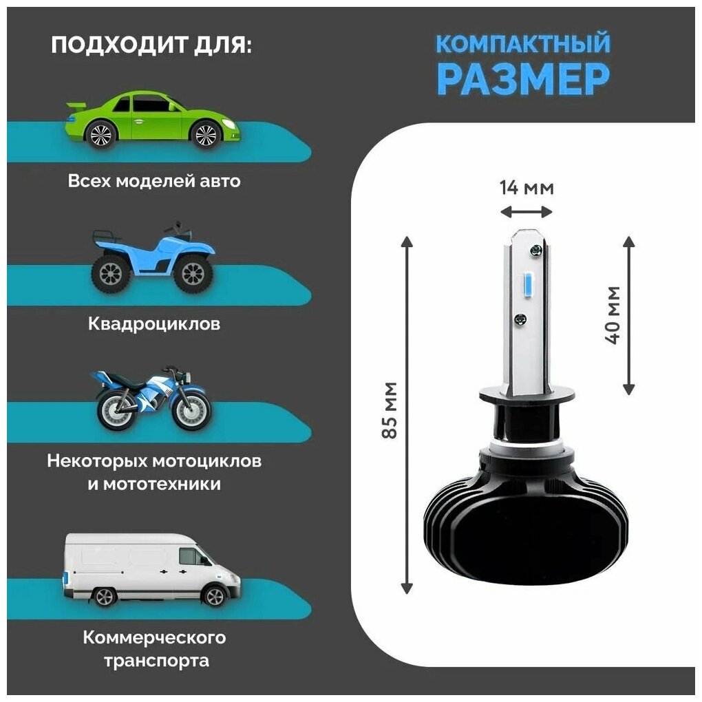 Светодиодные лампы для автомобиля MYX S1 цоколь H1 с напряжением 12V и мощностью 36W на две лампы, чип CSP 1616 температура цвета 6000K, цена за 2шт.