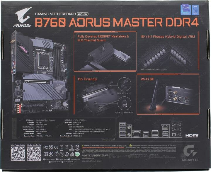 Материнская плата GIGABYTE B760 AORUS MASTER DDR4 (LGA1700, ATX)
