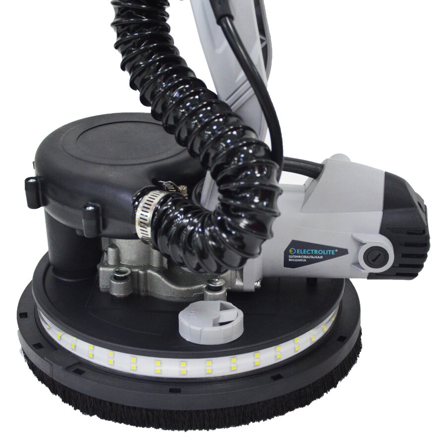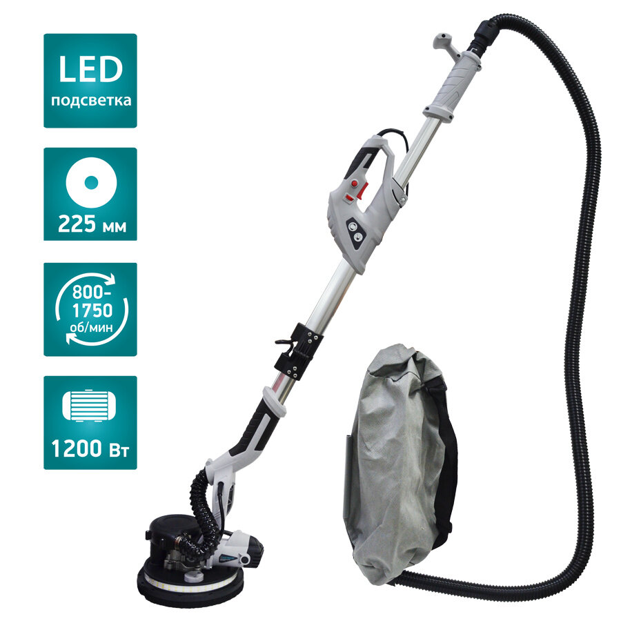 Шлифовальная машинка для стен и потолка жираф ELECTROLITE ШМ-1200EL ( 1200 Вт, LED-Подсветка, Об/мин 800-1750, Круг 225 мм, Длина телескопической штанги 1,2 М-1,7 М, пылесос)