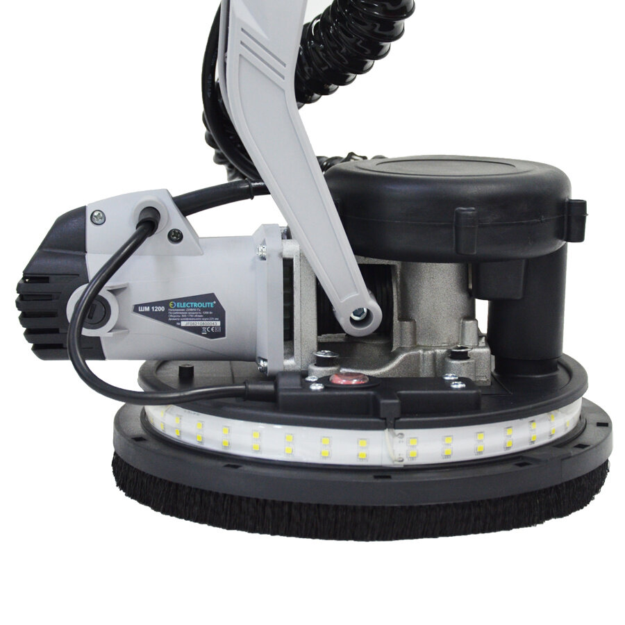 Шлифовальная машинка для стен и потолка жираф ELECTROLITE ШМ 1200 ( 1200 Вт, LED-Подсветка, Об/мин 800-1750, Круг 225 мм, Длина телескопической штанги 1,2 М-1,7 М, пылесос)
