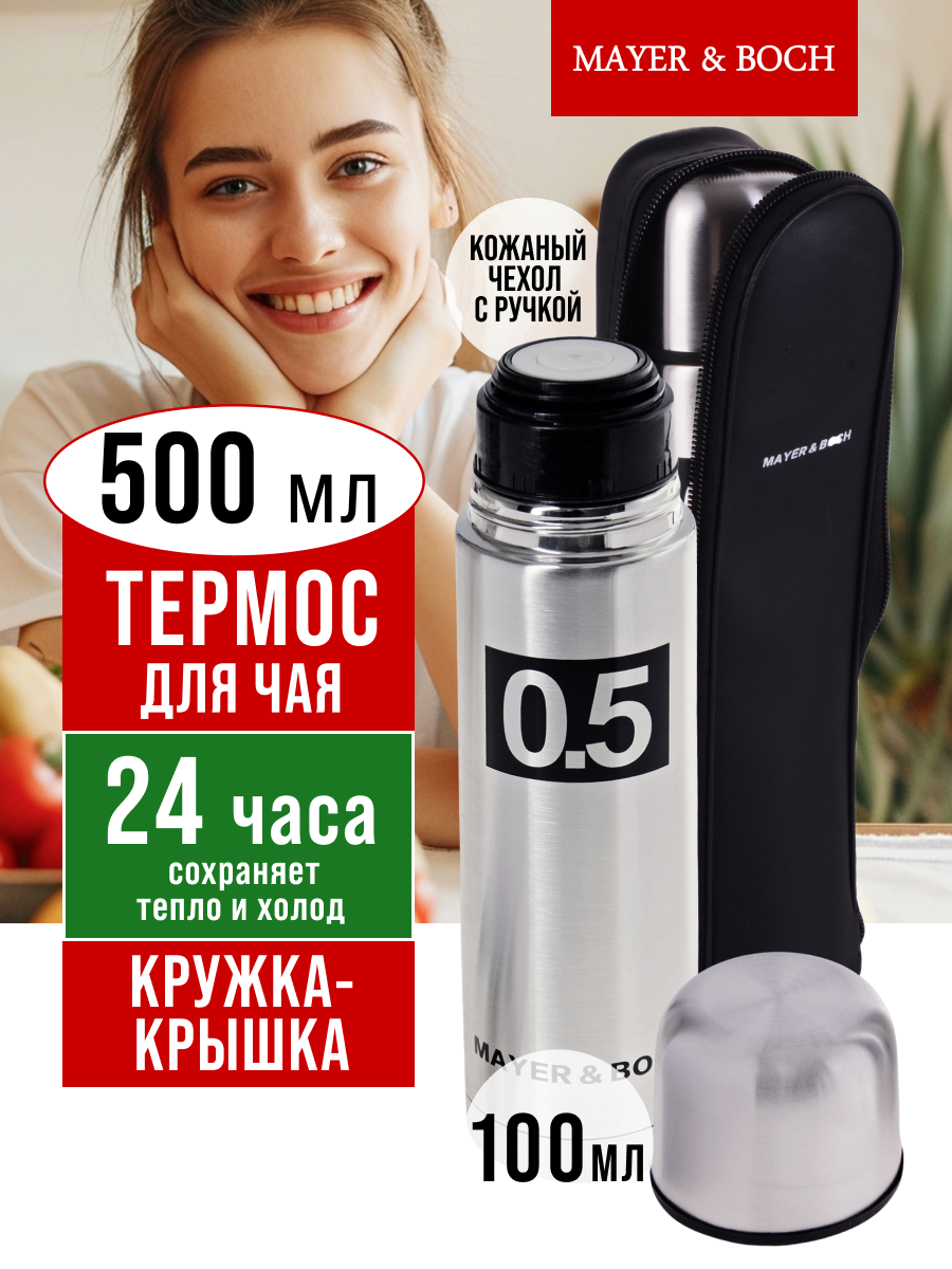 Термос Mayer&Boch / Майер Бош с чехлом-сумкой, из нержавеющей стали, серебристый, 0.5л / термопосуда